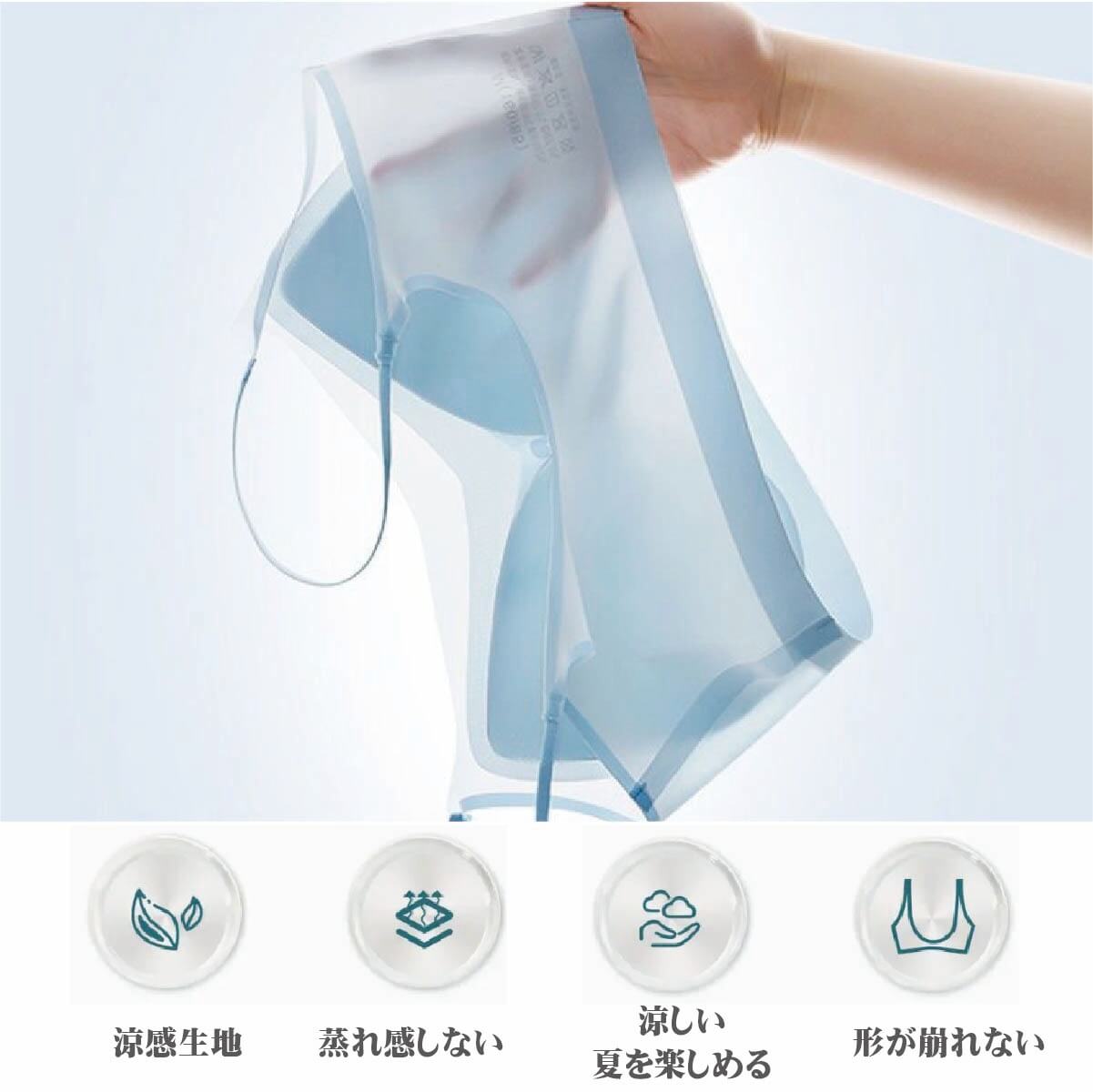 超極薄・接触冷感素材を採用した「0.1mm極薄美背中ブラ」は、夏にナイトブラを付けると寝苦しい、暑い日用の快適なインナーが欲しい、ワイヤーの締め付け、蒸れによる不快感、汗でブラが張り付くなどの不快感など、暑いシーズンでも快適に過ごせるノンワイヤーブラジャーです。触れたらひんやりする接触冷感素材を採用し、蒸れにくく、吸汗性、速乾性機能などでサラッとベタつかない快適なつけ心地です。立体的カップやシームレスで締め付けず、脇高設計で理想的な形にしっかり整えます。しゃがんだ時のチラ見え防止など、薄着になる季節にファッションも楽しみやすい!夏のブラジャーにお困りの方へ、おすすめのノンワイヤーアイスブラジャーはいかがでしょうか。