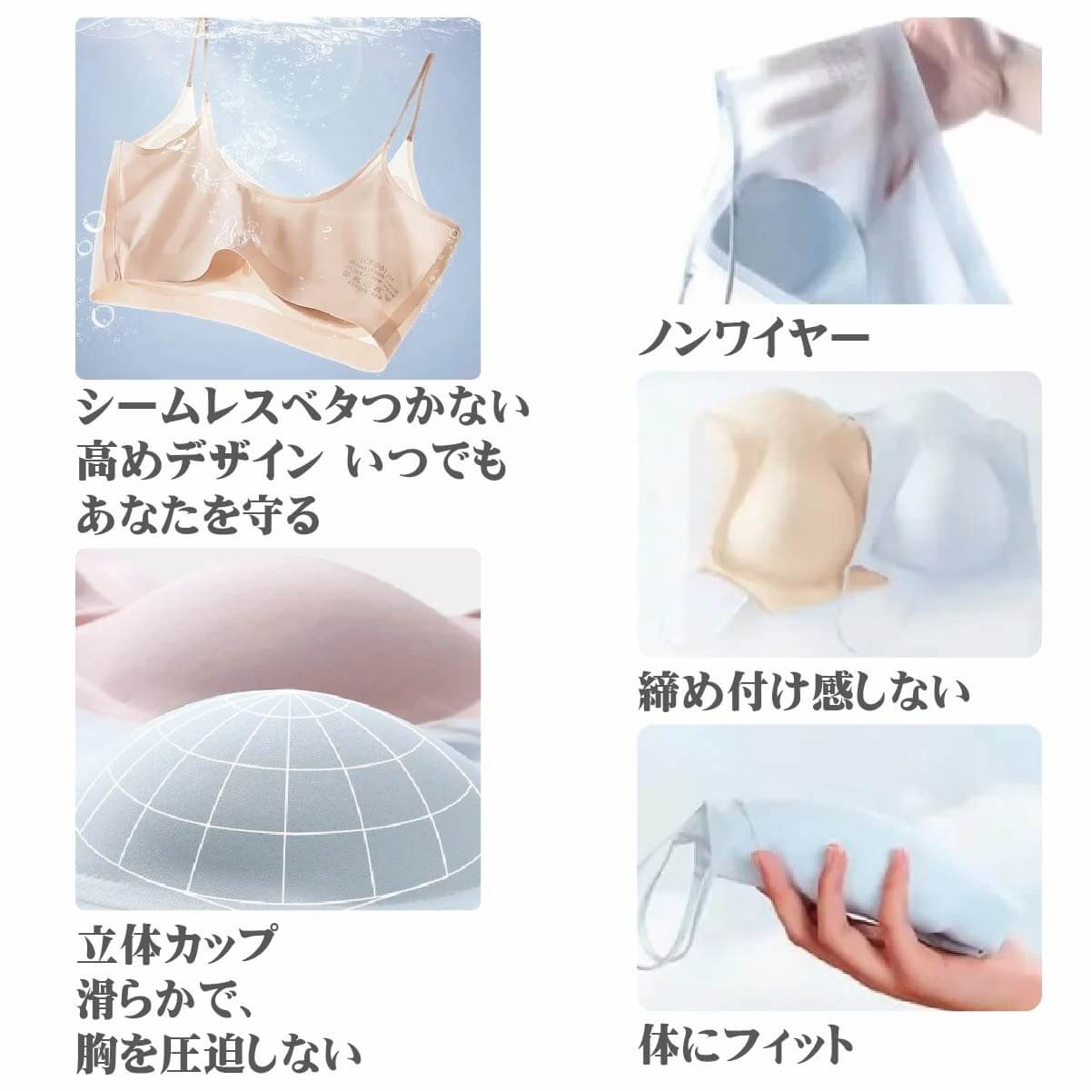 【シームレス】バストを包み込んで、キツイ感じがしないシームレスデザイン。