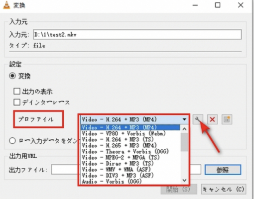 手順3:同じ「変換」画面の「出力用URL」の右側「参照」をクリックし、ファイルの拡張子を「.mp4」とつけて「保存」→下の「開始」ボタンをクリック