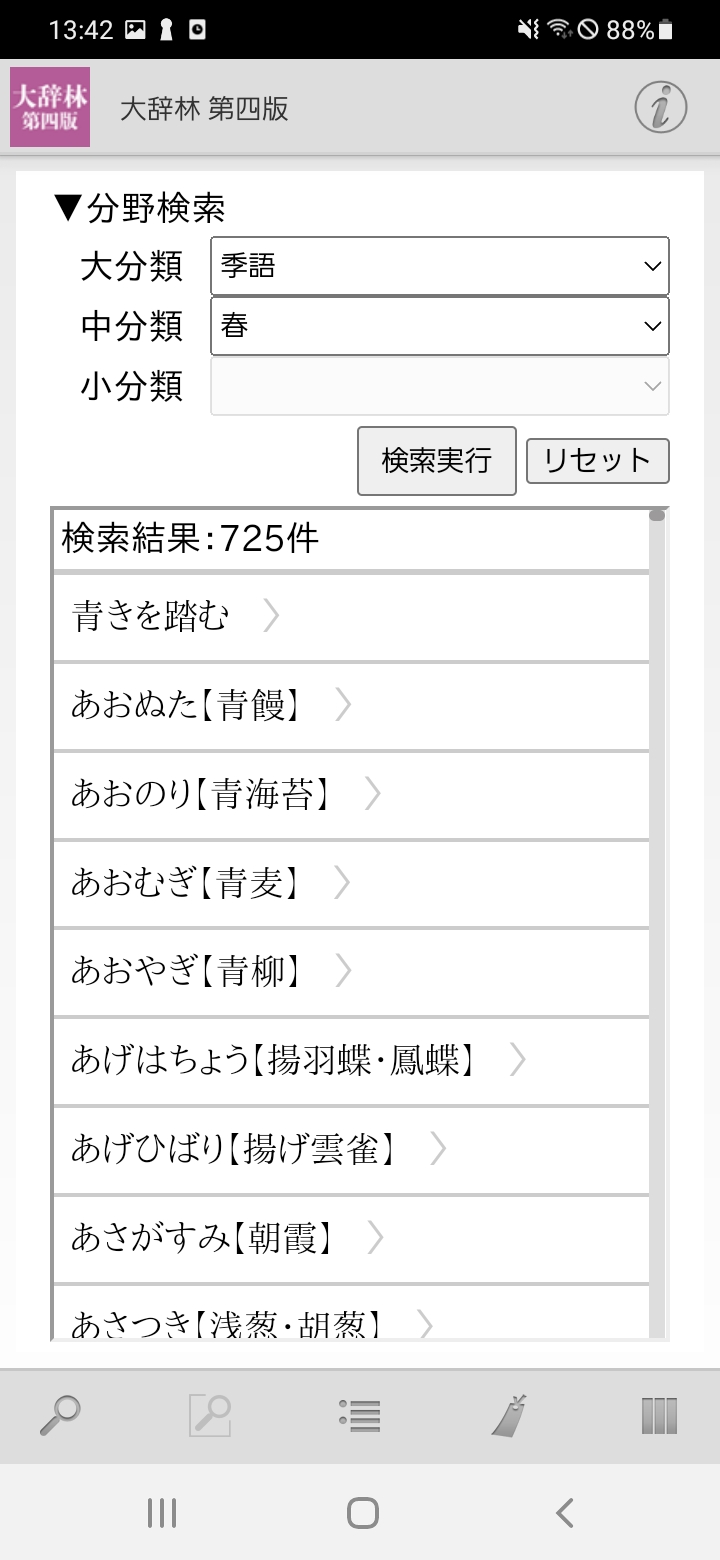 ・さらに辞典の性質に合わせて、分野を「大分類」「中分類」「小分類」と絞り込みを行う専用機能を搭載。