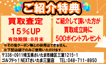 ※Sランク、単品アイアンは査定UPの対象外です。