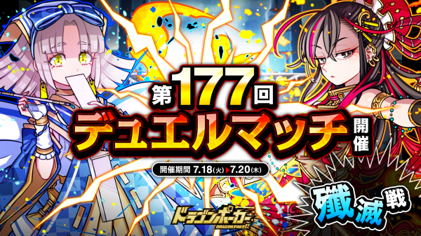 株式会社アソビズム(本社:東京都千代田区、代表取締役:大手智之)は、App Store・Google Playにて好評配信中のリアルタイム合体カードバトル『ドラゴンポーカー』で、2023年7月18日(火)より「第177回デュエルマッチ本戦」を開催いたします。
