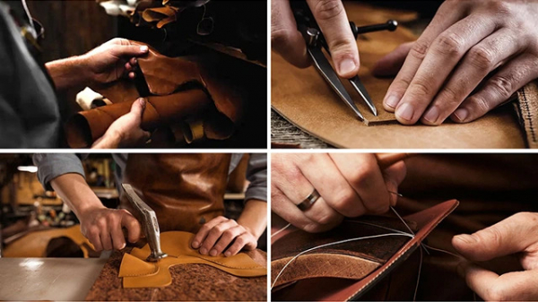 SK長財布は、熟練の職人が細部までこだわってひとつひとつ手作りします。それぞれの財布に個性があり、仕上がりが微妙に異なります。