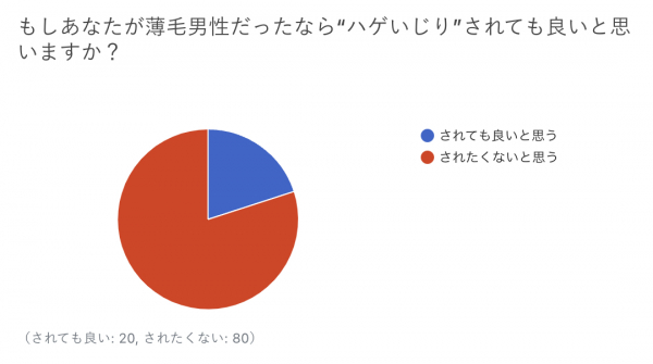 また、自分自身が薄毛男性だったらハゲいじりをされても良いかの質問については、8割の人がされたくないと回答。2割の人はされても良いと回答しました。