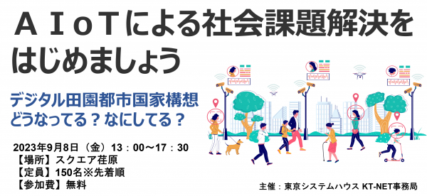 IT企業によるビジネスコラボレーション団体KT-NET(事務局:東京システムハウス株式会社、所在地:東京都品川区)は、地域課題の解決に取り組む立場の方(官民の団体・個人)、地域マネジメント団体(商店街振興組合等含む)、IT関連企業の方、非IT企業のイノベーション担当の方向けイベントKT-NETフェスタ2023「AIoTによる社会課題解決をはじめましょう~デジタル田園都市国家構想どうなってる?なにしてる?~」を2023年9月8日(金)に開催します。