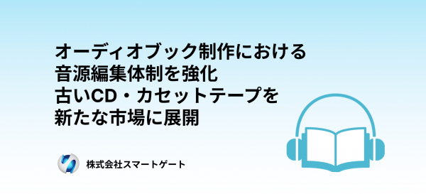 株式会社スマートゲート(本社:東京都豊島区、代表取締役:後藤康宏、以下スマートゲート)は、2023年7月27日、オーディオブック制作における音源編集体制を強化したことをお知らせいたします。これに伴い、古い音源(CD・カセットテープなど)を昨今市場が拡大しているオーディオブック市場に展開する動きを強めていく方針です。