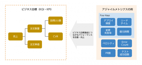 従来型のアプリケーション開発では、開発生産性や品質指標(不具合発生率など)が重視されてきましたが、攻めのDXにおける製品・サービスにおいては、ビジネス目標(≒ 売上など)の達成が最重要となります。