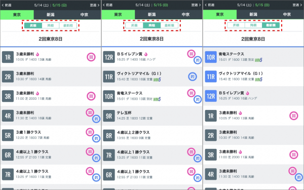 このたび「 SPAIA競馬 」をご利用いただいている皆さまに、より便利に競馬予想をお愉しみいただきたい想いから、これまで12レースから降順で並んでいたレース一覧に「昇順・降順・最新順」の切り替えボタンを追加いたしました。今回のリニューアルにより、ユーザーの皆さまが見やすい並びでレースを確認することが可能になりました。