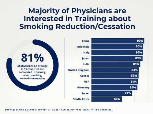 * 平均87%の医師が、患者の禁煙を支援することが優先事項であることに少なくとも中程度同意しているが、トレーニングやニコチン知識の不足が禁煙や健康アドバイスに悪影響を与えています。