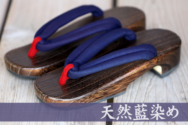 天然藍染め国産焼磨き女桐下駄 24cm