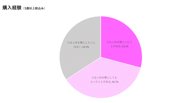 調査結果から、1歳以上の女の子のいる家庭では約6割超がひな人形を購入していること。また、検討開始のタイミングは初節句に合わせて行い、実店舗での下見をしたうえでの購入を重視している家庭が多いことがわかった。