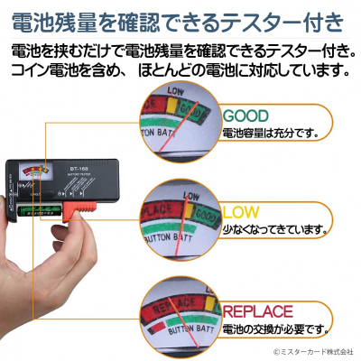 【電池テスター付き】 電池残量がわかるので,交換時期に役立ちます。
