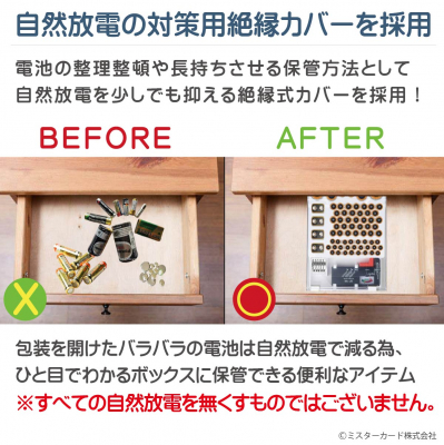 【電池を1個ずつ収納】 整理整頓しながら、電池1個ごとに保管できます。