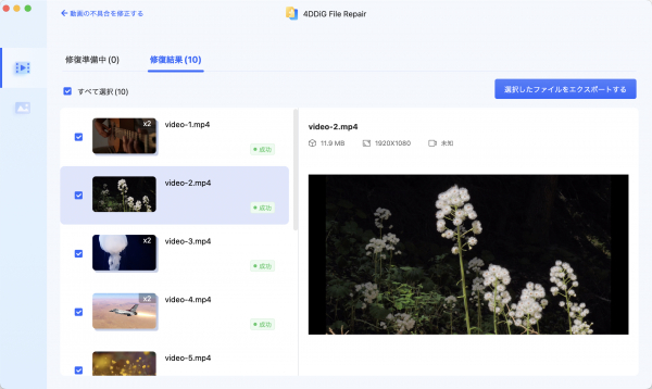何より、「4DDiG File Repair」のインターフェイスは、修復作業の指示が大変わかりやすく、初心者でも操作が簡単です。修復したい動画を選択し、「修復開始」を選択すること容易にプロセスを開始することができます。日々動画ファイルを閲覧、編集するMacユーザーであれば、持っていて損のないツールであるといえるでしょう。