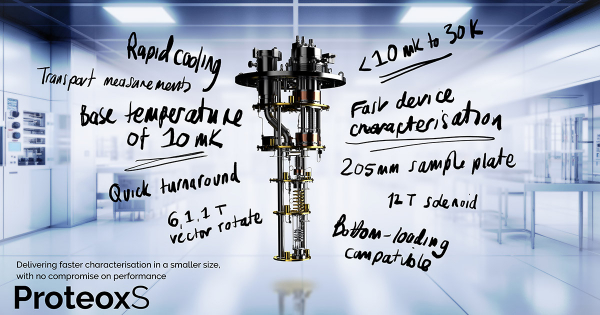 オックスフォード・インストゥルメンツは2023年7月25日、希釈冷凍機シリーズの最新機種である ProteoxS を発売しました。ProteoxSは急速冷却、高速ターンアラウンド、低温性能に妥協のないコンパクトな希釈冷凍機です。ProteoxSは、最も小型で低価格のシステムですが、このシリーズの他の冷凍機と同様にベース温度が 10 mK 以下に到達することができ、現在市場にある他のシステムとは一線を画しています。