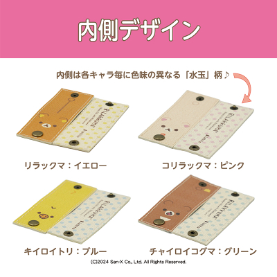 内側にはキャラクター毎に異なる色味の水玉模様をあしらい、表裏で飽きのないデザインに仕上げています。