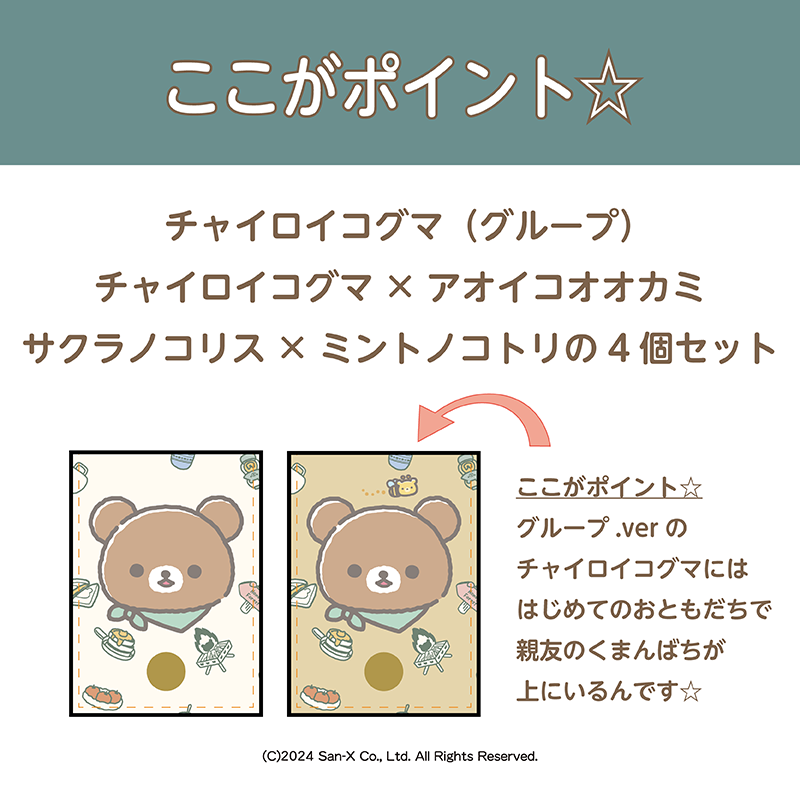 <小売価格>:単体896円、リラックマ(グループ)2,640円、チャイロイコグマ(グループ)3,520円(税込)