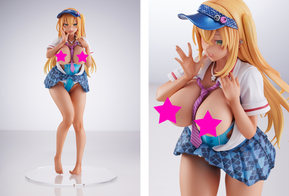 着崩された服とそこから覗く競泳水着、そして褐色のお肌を丁寧に再現。