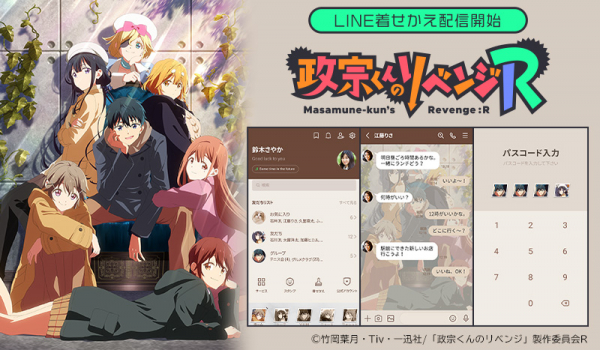 TVアニメ「政宗くんのリベンジR」の初となるLINE着せかえがインクルーズより配信開始!記念すべきLINE着せかえ第1弾は、キービジュアルを使用したデザインです。是非、LINE着せかえでもTVアニメ「政宗くんのリベンジR」の世界観をお楽しみください。