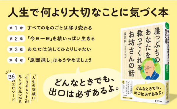 株式会社三笠書房(東京都千代田区/代表取締役:押鐘太陽 http://www.mikasashobo.co.jp )は、2023年7月19日に『崖っぷちのあなたを救ってくれるお坊さんの話』著者篠原鋭一が、キンドル電子書籍で配信開始いたしました。
