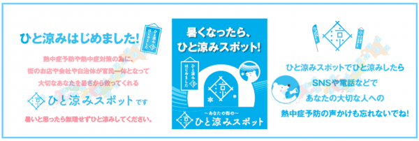 これらの背景から、本プロジェクトが開始当初から官民一体で取り組んでいる“ひと涼みスポット”を街単位(自治体単位)で増やし熱中症による被害者を減らす為に、~あなたの街の~”ひと涼みスポット”活動をこの夏から開始いたします。