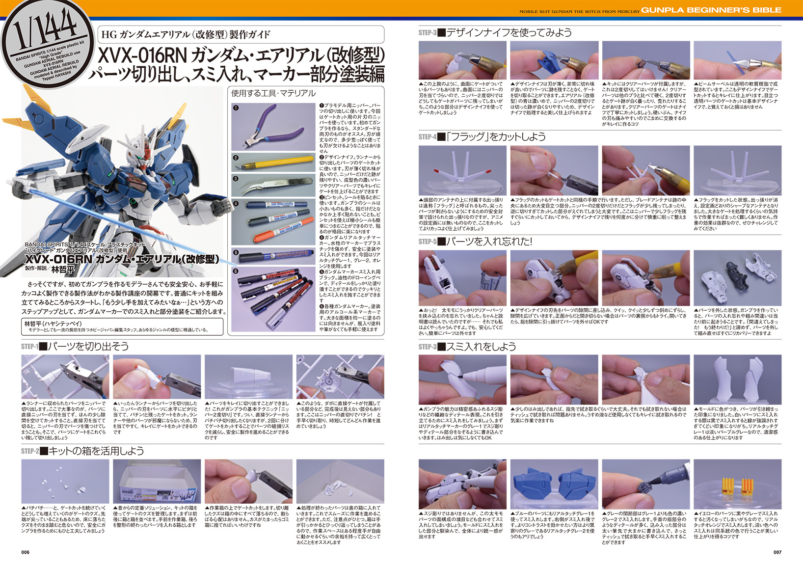 ●「HGガンダムエアリアル(改修型)製作ガイド」…パーツの切り方、マーカー塗装法などを指南!
