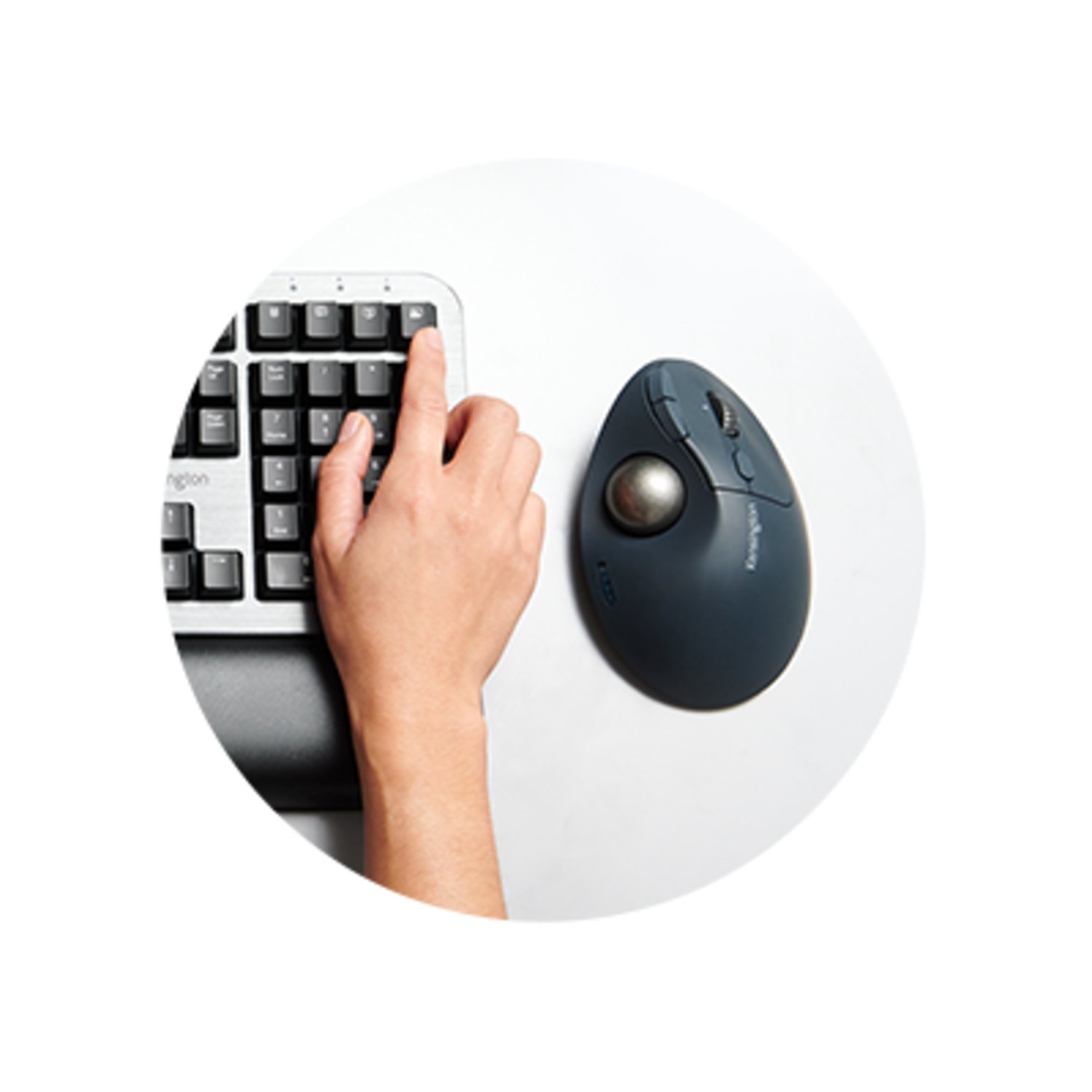 Pro Fit(R) Ergo TB550トラックボールはマウスから移行しやすい形状をトラックボールに採用し、人間工学に基づいてユニークな設計に仕上げました。トラックボールを初めて使うユーザーに使用しやすい設計でBluetooth(R)LE接続および2.4GHzワイヤレス接続で様々な接続オプションがあり、4Dスクロール機能により垂直スクロールと水平スクロールを可能にしました。プラスチック素材の51%にリサイクルされた再生プラスチックを使用、リチウムイオン電池搭載なので充電して使用できます。特許を取得したボール取り出しボタンを搭載し、お手入れ時には簡単にボールを取り出すことができます。また光学トラッキングテクノロジー採用で緻密な操作を可能にします。