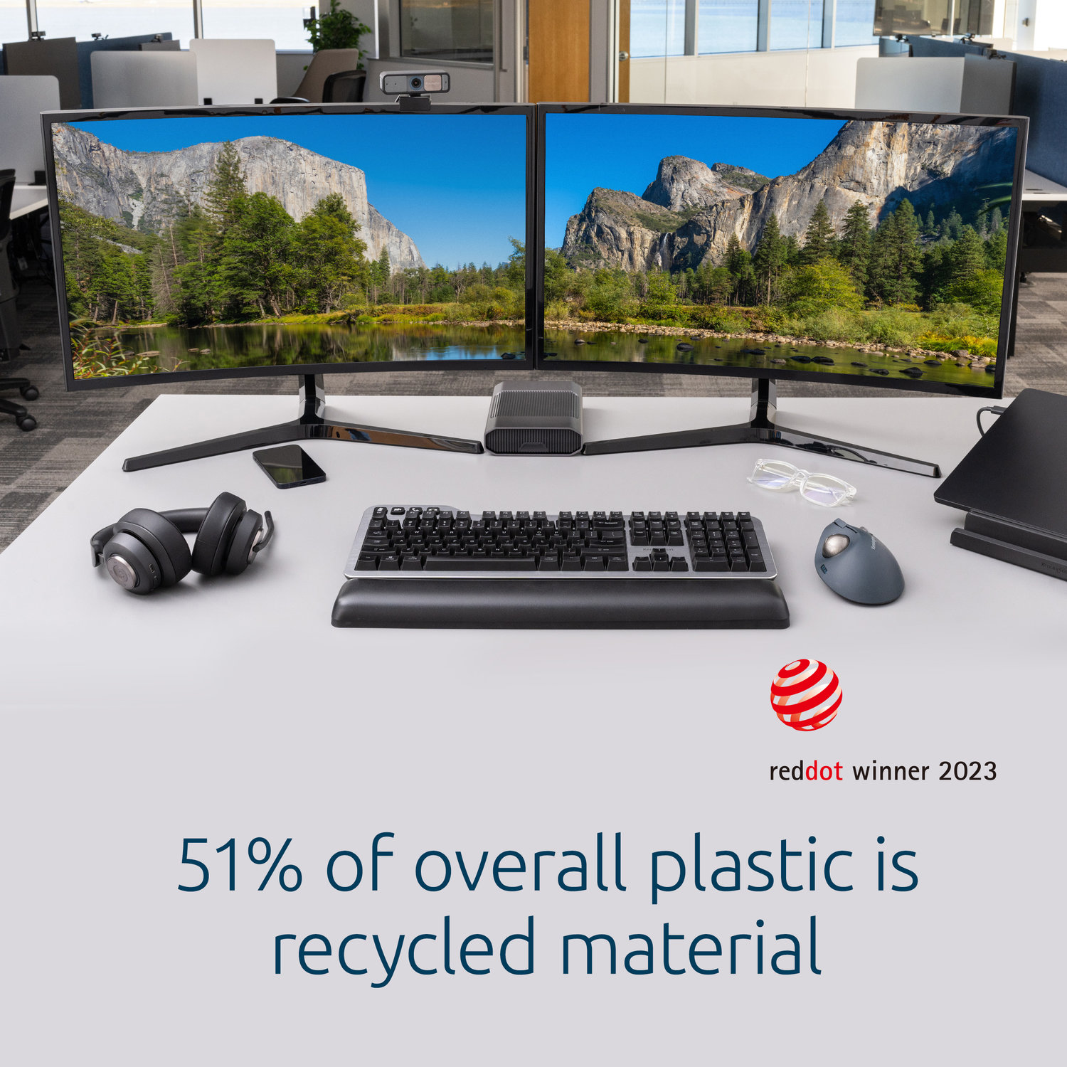Kensingtonは持続可能で環境に優しい経営を目指し同製品の51%をリサイクルされた再生プラスチックを使用しています。