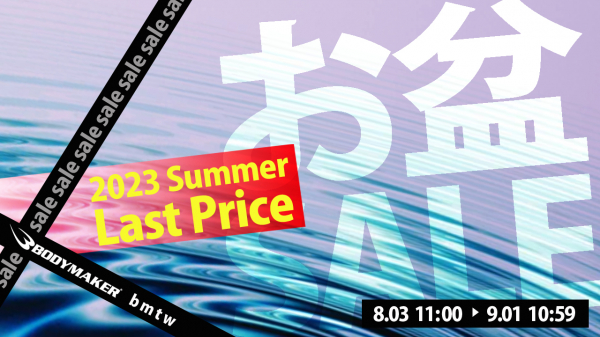 スポーツブランドBODYMAKER(ボディメーカー)は、日頃のご愛顧に対する感謝の気持ちを込めて、2023年8月3日(木)より9月1日(金)まで、期間中、BODYMAKER公式サイト及び、直営店舗(2023年8月4日(金)より8月31日(木)まで)にて、夏の恒例「お盆休みセール」を開催します。期間中、ボディメーカー公式サイト及び直営店舗で、スポーツウエアはもちろん、シューズやトレーニング用品などが大幅値下げ商品満載。例えば、人気のスニーカーが¥1,990がなんと半額¥990や、夏に人気の接触冷感DRYウエア¥990など、最大70%OFFまで。まさに早い者勝ち!無くなり次第終了、在庫限りの大セールです。ぜひ、こ、の機会にお早めにお買い求めください。BODYMAKER(ボディメーカー)は、今年も楽しい企画満載のイベントを予定しています。ぜひ 一度ご覧ください。