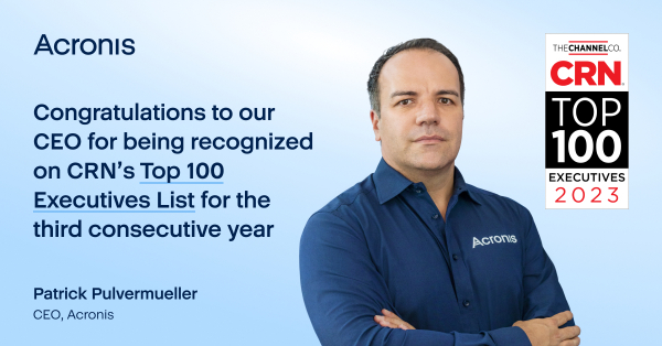 プルヴァミュラーの2023年CRNトップ100エグゼクティブリスト選出の詳細については、こちらの最新ブログをご覧ください。 https://www.acronis.com/ja-jp/blog/posts/ceo-patrick-pulvermueller-honored-on-crns-top-100-executive-list-for-third-year-in-a-row