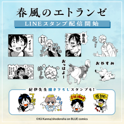 「春風のエトランゼ」の初となるLINEスタンプがインクルーズより販売開始!紀伊カンナ先生の描き下ろしイラストが5点もついたスペシャルなスタンプです♪