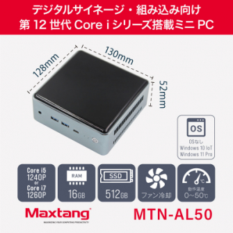 株式会社リンクスインターナショナル(本社:東京都千代田区、代表取締役:川島義之)は、12コア/16スレッドの高性能なIntel(R)第12世代 Core(TM) iシリーズCPUを搭載したデジタルサイネージ・組み込み向けミニPC Maxtang MTN-AL50を2023年8月3日より受注受付開始いたします。