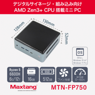 株式会社リンクスインターナショナル(本社:東京都千代田区、代表取締役:川島義之)は、6コア/12スレッドの高性能なZen3+世代のCPU、AMD Ryzen(TM) 5 6600Hを搭載したデジタルサイネージ・組み込み向けミニPC Maxtang MTN-FP750を2023年8月3日より受注受付開始いたします。