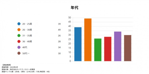 この調査は、カイテクノロジー社内で社員の健康促進を目的に活動している「ヘルシーごはん研究会」が開催した「栄養ワンダー2023」社内イベントの一環として実施いたしました。7月7日に開催した社内イベントでは、「Mr.献ダテマン」の開発をサポートする実務経験のある管理栄養士・栄養士が協力のもと作成した、「オフィスでの間食」について啓蒙する動画を公開。この動画の中で本調査結果を公開し、従業員の「間食」および「食生活」への意識向上を図りました。