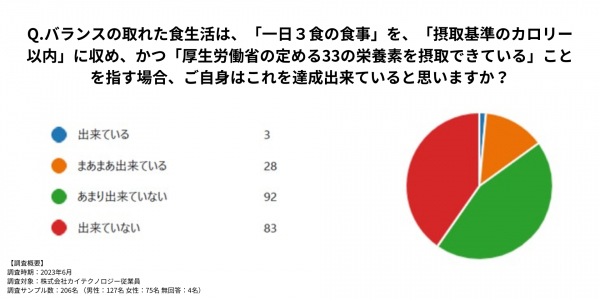 Q2. バランスの取れた食生活は、「一日3食の食事」を、「摂取基準のカロリー以内」に収め、かつ「厚生労働省の定める33の栄養素を摂取できている」ことを指す場合、ご自身はこれを達成出来ていると思いますか?