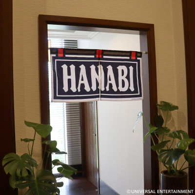 ミリオンゴッドの天空の扉デザインで好評の暖簾(のれん)に、「スロット・ハナビの日」記念バージョンが登場!