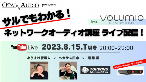 の3名で、今話題の”ネットワークオーディオ”をとことん深堀りするYouTubeライブ配信になります。ハードウェア新製品が発売直前となる「Volumio」の使い方、魅力もわかりやすく解説。
