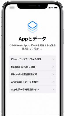 ・その後、画面の指示に従って初期化を行った後、Wi-Fi環境下で「iCloudバックアップから復元」を選択します。