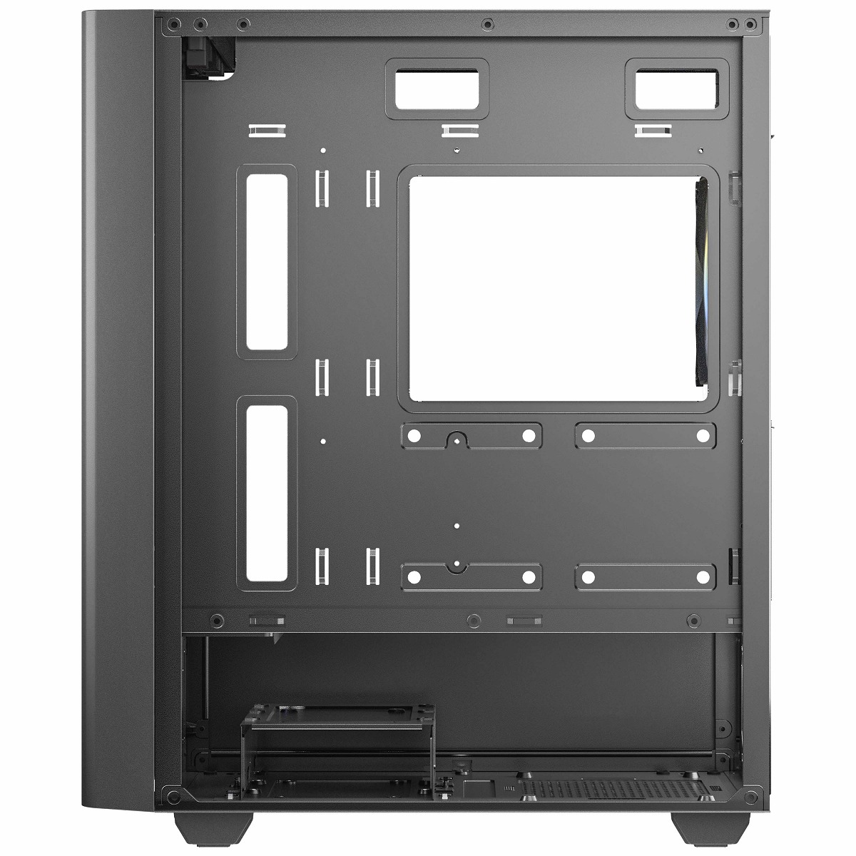 フロントに2個、リアに1個搭載されたARGBファンを含め、最大で6個の120 mmファンを同時搭載できます。フロントには最大で360 mmサイズのラジエータ搭載にも対応し、高い冷却性能を発揮できます。