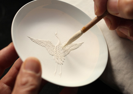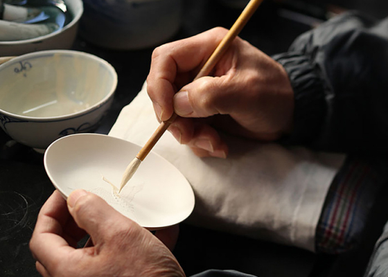 三川内焼の伝統技法「置き上げ」、繊細で巧みな筆づかいの「染付」。伝統工芸士・現代の名工でもある 光雲窯 現当主十四代目 今村隆光氏の匠の手技をお愉しみください。