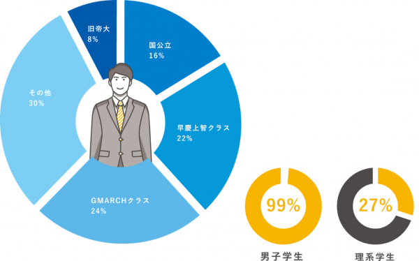 ・男子学生が99%
