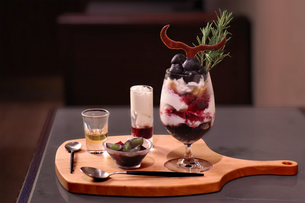 『巨峰を楽しむ蜂蜜チーズパフェ』は、旬の巨峰の甘さと、クリームチーズや蜂蜜の風味とコク、そしてそのハーモニーを楽しむ、大人の味わいを追求したパフェです。