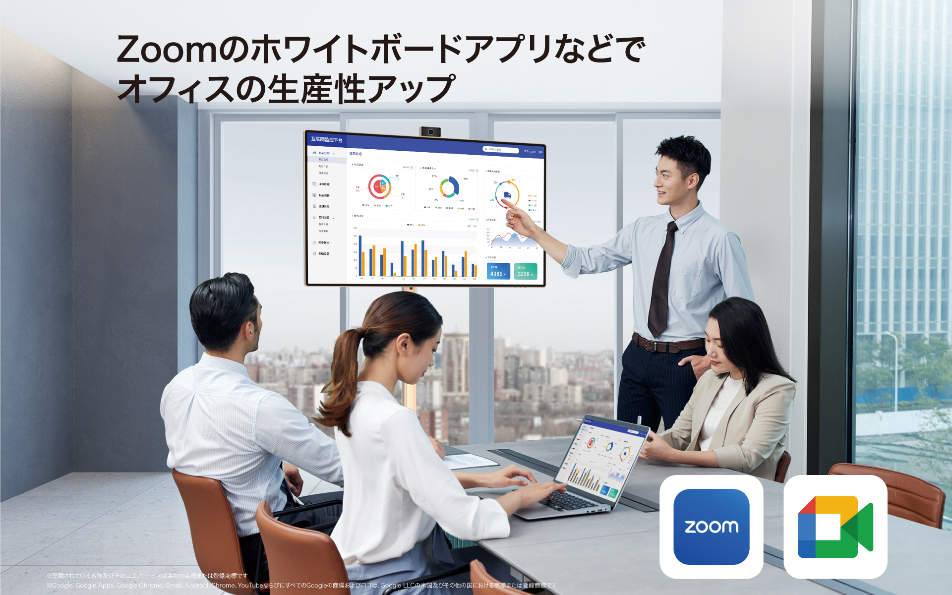 10点マルチタッチ対応のタッチパネルを搭載し、Android対応のWeb会議アプリなどを活用してオフィスや在宅ワークでの生産性を向上できます。HDMI入力にも対応し、会議室でPCのセカンドディスプレイとして使用することも可能です。