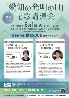 世界中の人々の夢を宇宙で実現させる民間宇宙サービスプラットフォームを提供する宇宙ベンチャー企業株式会社ASTRAX(アストラックス、以下 ASTRAX、本社:神奈川県鎌倉市、代表:代表取締役・民間宇宙飛行士 TAICHI(山崎大地))の代表TAICHIが、2023年8月1日に、愛知県名古屋市のウインクあいち(愛知県産業労働センター)において、「愛知の発明の日」記念講演会にて「『宇宙へ行く』~民間宇宙ビジネスの創出」と題して講演を行いました。