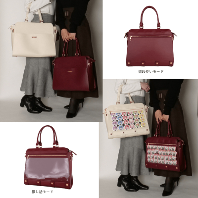 また、痛バッグのアイデンティティーでもある推しのグッズを入れる「ビニールポケット」を目立たないようにする、あるいは見えないようにする「擬態」機能にも独自の設計を採用しています。