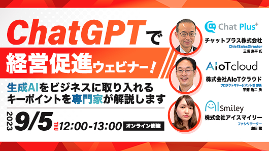 【ChatGPTで経営促進ウェビナー!】~生成AIをビジネスに取り入れるキーポイントを専門家が解説します~