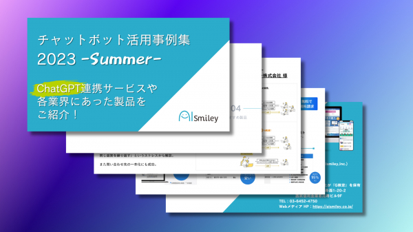 AIsmileyの担当より「チャットボット活用事例集2023-Summer-」をメールにて送付させていただきます。