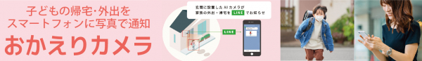 留守宅への子どもの帰宅や外出、また幼児が意図せず鍵開けを行ったことによる脱走もリアルタイムで通知される、AI搭載防犯カメラを使ったセキュリティシステムです。
