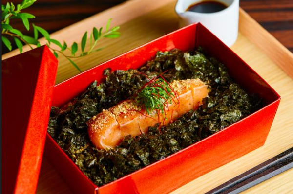 手間暇かけてじっくり漬け込んだ昆布巻き明太子を、海苔を敷いたごはんの上に乗せ、旨味成分たっぷりの「特製かけだれ」をかけて食べる博多名物「めんたい重」。