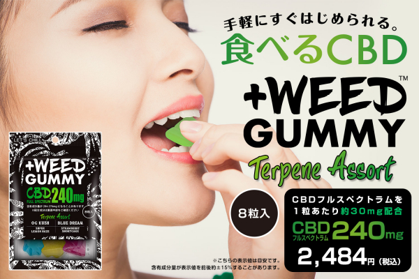 株式会社GREEN RUSH BY WEEDは、【+WEED(プラスウィード)】から、この度、食べるCBD「プラスウィードグミCBDフルスペクトラム240mg<テルペンアソート>」パウチタイプを2023年8月17日(木)より発売いたします。